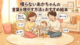 赤ちゃんがなかなか喋らず不安な方へ。言葉の発達の流れや教え方、発語を促す関わり方を解説し、実際に使ってよかったおすすめ絵本「あかちゃんごおしゃべりえほん」を体験談つきで紹介します。